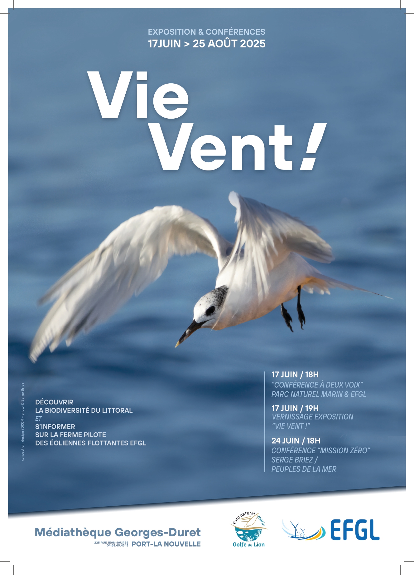 Ces conférences se sont déroulées dans le cadre d’une exposition photographie sur les richesses de la biodiversité marine du golfe du Lion, conçu par Ocean Winds, également en partenariat avec le Parc Naturel Marin du golfe du Lion, visible tout au long de l’été à la Médiathèque (17 juin – 25 août).